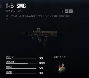 | メインウェポン | T-5 SMG(サブマシンガン)