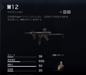 低レート中威力のサブマシンガンで中遠距離において扱いやすいです。