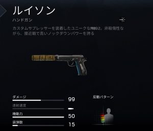 カベイラのみが使える強力なハンドガンで、サプレッサーが標準装備の高威力なハンドガンです。