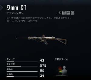 近距離メインで立ち回りたい方 9mm C1(サブマシンガン) 中距離メインで立ち回りたい方 |
