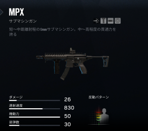 高レートながらも反動があまり大きくなく使い易いサブマシンガンです。