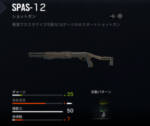 セミオート式のショットガンでレートが高く、近距離に強い武器です。