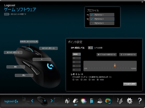 これらのボタンは自由にセッティングする事が可能なのに加えて、ロジクールのソフトウェアで3パターンまで登録できます。