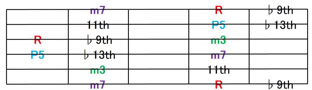その為この二つを覚えなくても指板上のコードトーンを一通り網羅する事が可能です。