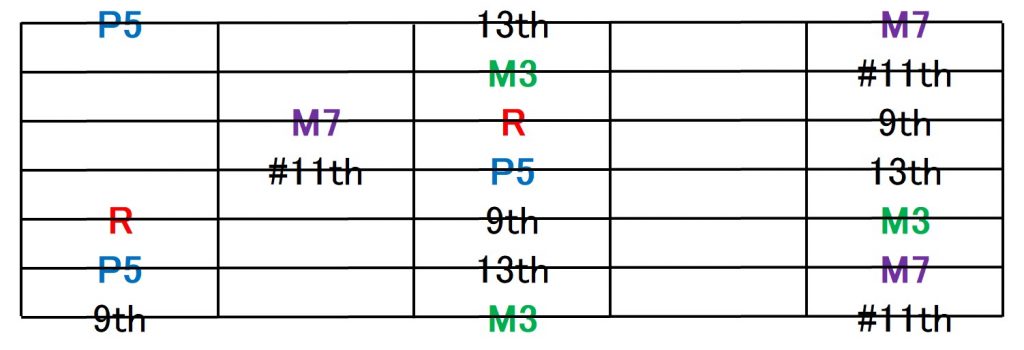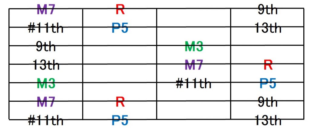 リディアンスケールはメジャースケールを4番目から弾き始めた場合と同じ並びの音階を持っているスケールです。