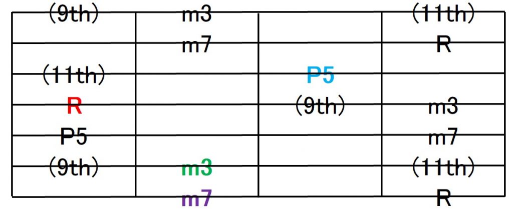 「Ⅵm7で使えるテンションノート」と「コードフォームに使用していないコードトーン」