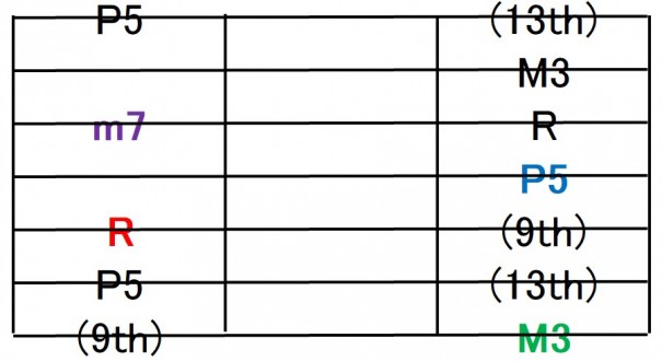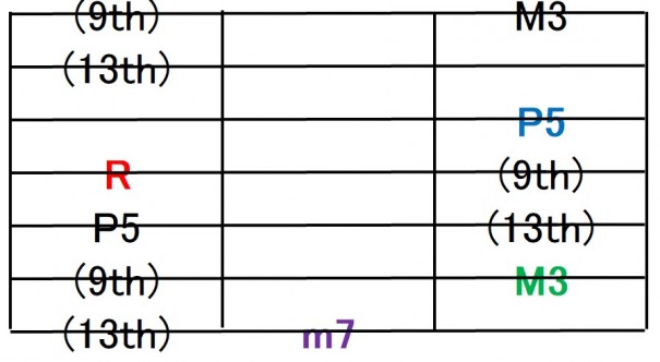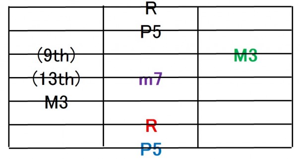 今回は7弦を交えて押さえるコードフォームを紹介していきます。