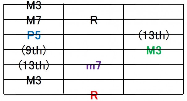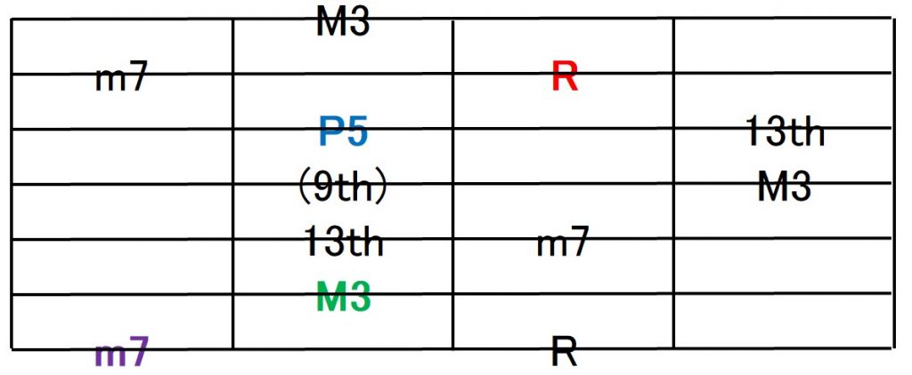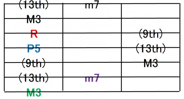 ちなみにコードの押さえ方はコードトーンを押さえて響きが良ければ何でも使えます。