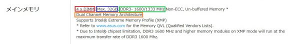 上の「メモリを選ぶ前に搭載しているマザーボードを確認!」の項目で例として挙げているマザーボードの場合、