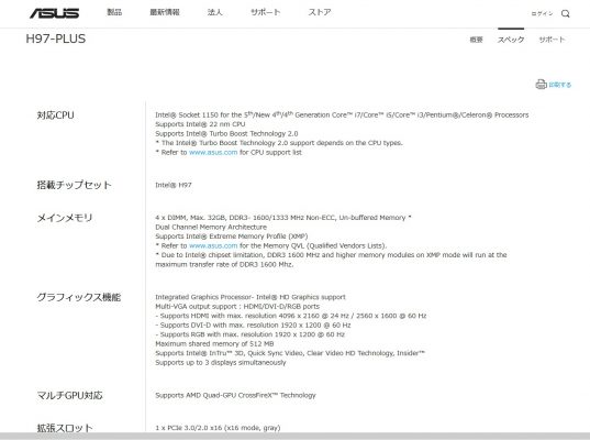 上の画像が「H97-PLUS」の公式サイトです。