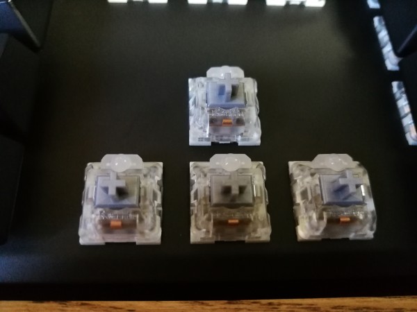 この銀軸はキーが反応する押し込み深さが普通よりも浅くなっていて素早い入力がしやすいです。