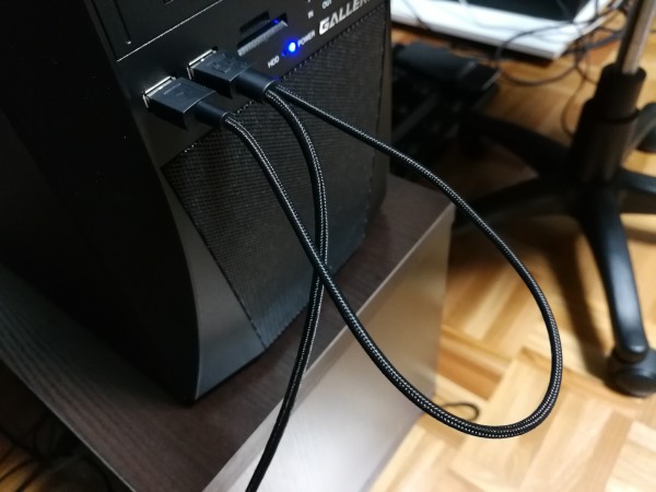 またこのキーボードはPCに繋ぐUSB端子が2つに分かれています。