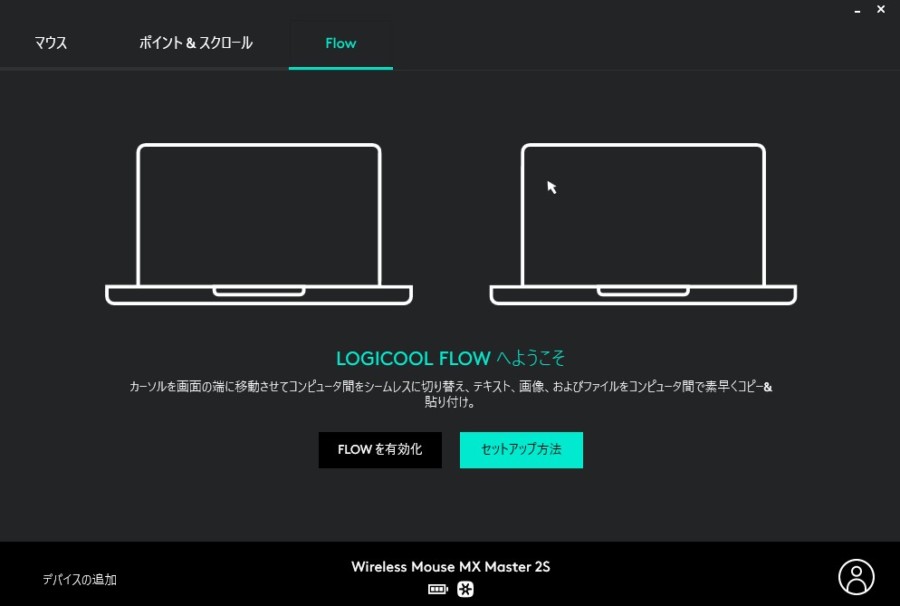 - 全てのPCにLOGICOOL OPTIONをインストール、FLOWを有効化させる。