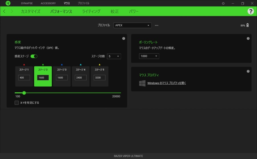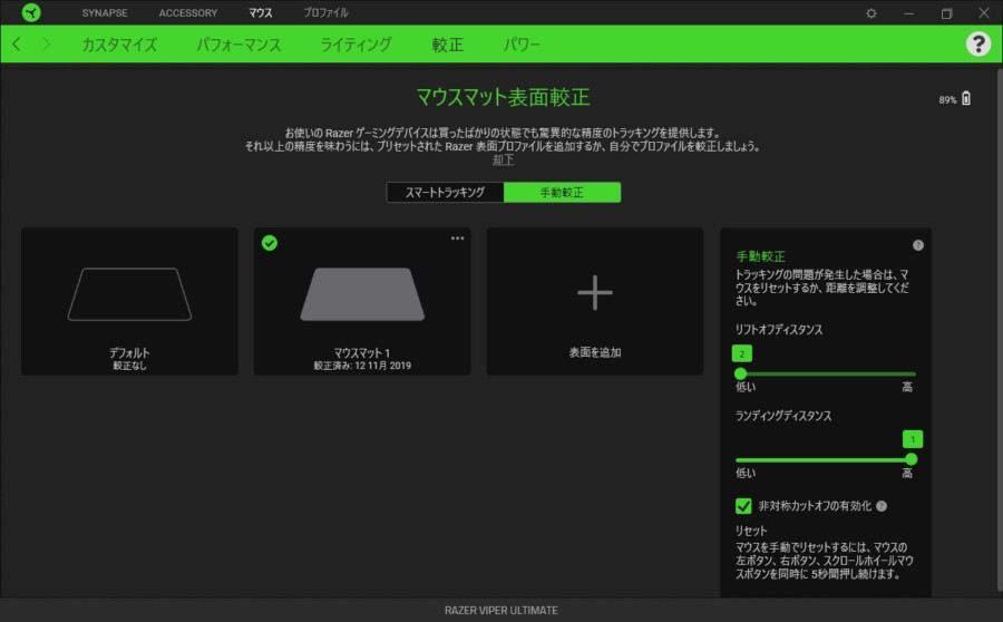 較正ではマウスパッドに合わせたセンサー設定をする事が出来ます。