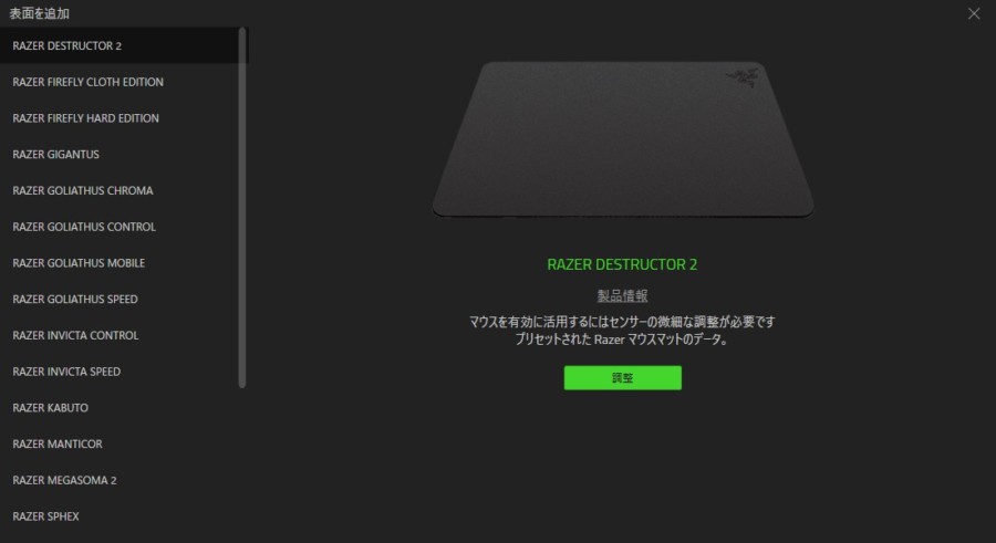 ちなみにRazer製のマウスパッドであればプリセットから選ぶだけで大丈夫です。