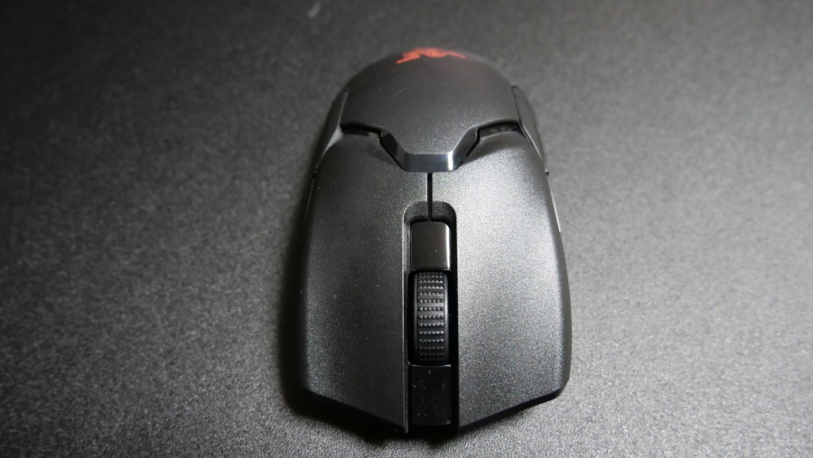サイドボタン以外に追加のボタンは無く、マウス上部にはクリックボタンとホイールしかありません。