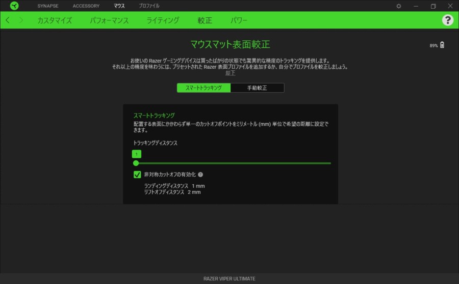 そして他の多くのマウスでは「リフトオフディスタンス」の調整しか出来ませんが、「Viper Ultimate」では「ランディングディスタンス」の調整も行う事が出来ます。