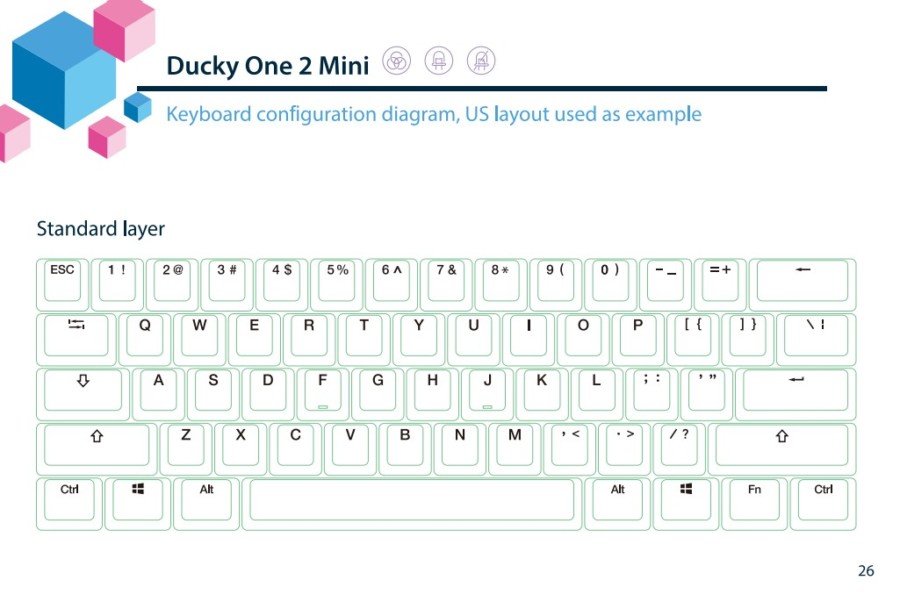 ちなみに「Ducky One 2 Mini RGB 60%」では通常のキーへの割り当てだけで無く、