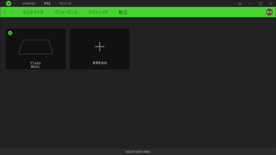 また上位機種の「Viper」「Viper Ultimate」では「カスタム」と言う項目があって自由に好きなマウスパッドを追加する事が出来ましたが、「Viper Mini」ではそれが出来ず、「Razerマウスパッド」に合わせた設定しか出来なくなっています。