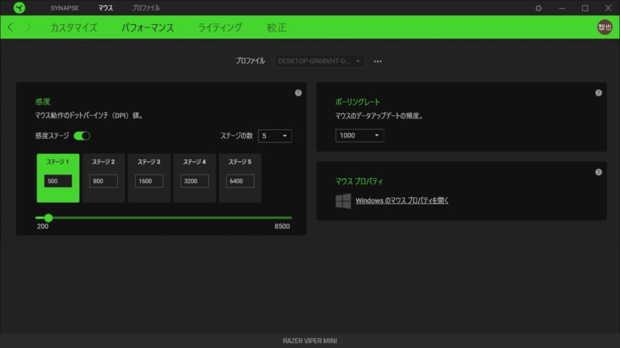 「Viper Mini」では細かい設定をする為に「Razer Synapse」と言う専用ソフトを使用します。