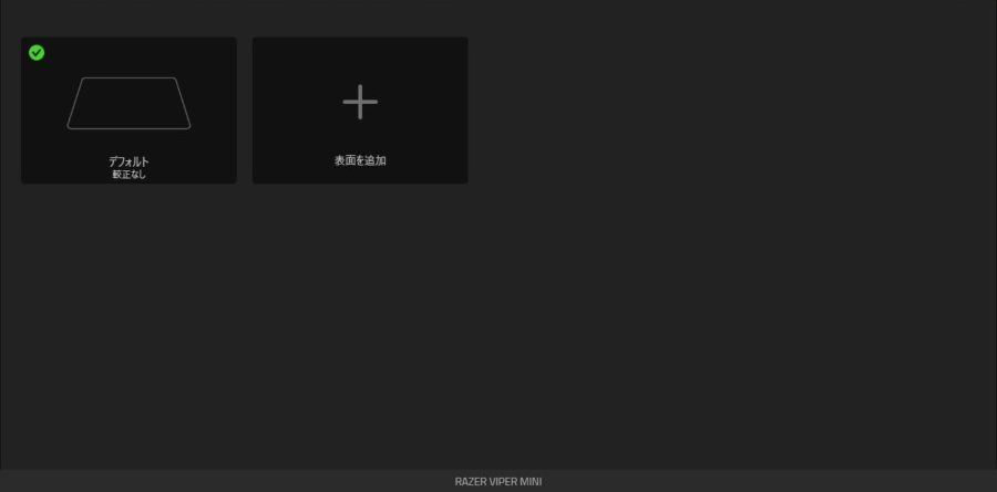 また上位機種の「DeathAdder V2」「Viper」「Viper Ultimate」などでは「カスタム」と言う項目があって自由に好きなマウスパッドを追加する事が出来ましたが、「DeathAdder V2 Mini」ではそれが出来ず、「Razerマウスパッド」に合わせた設定しか出来なくなっています。
