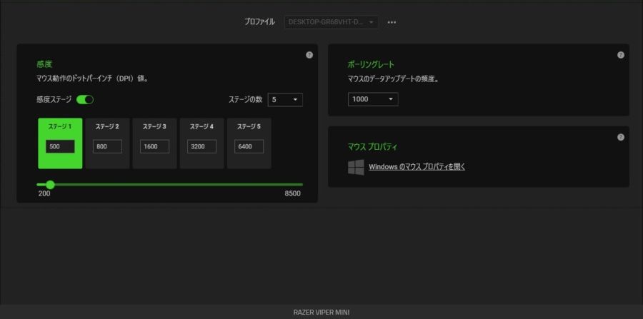 DPIについては200~8,500DPIの間で100単位で調整出来ます。