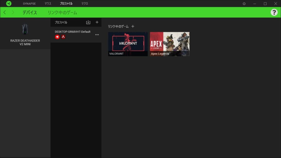 ちなみにゲームタイトルは「Razer Synapse」が自動で検知してくれて、もし検知してくれなくても自分で追加をする事が出来ます。