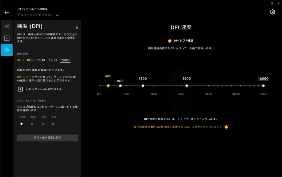 このボタンはデフォルトの状態だとDPI切り替えが割り当てられていますが、ソフトウェアを使って自由に割当を変更する事も可能です。