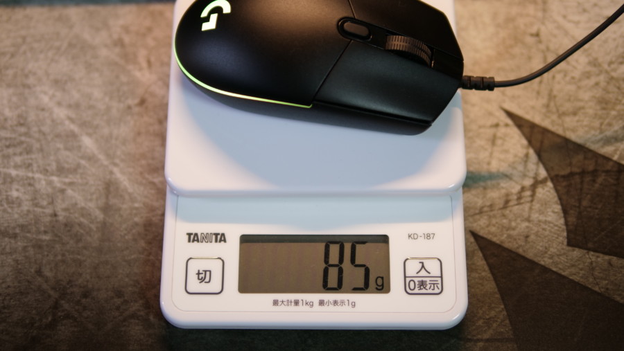 強いて挙げるとすれば、最近流行りの70グラム以下のマウスと比べると小型サイズながら少し重量感が感じられますが、「G-PPD-001t」も実測85グラムと十分軽いです。