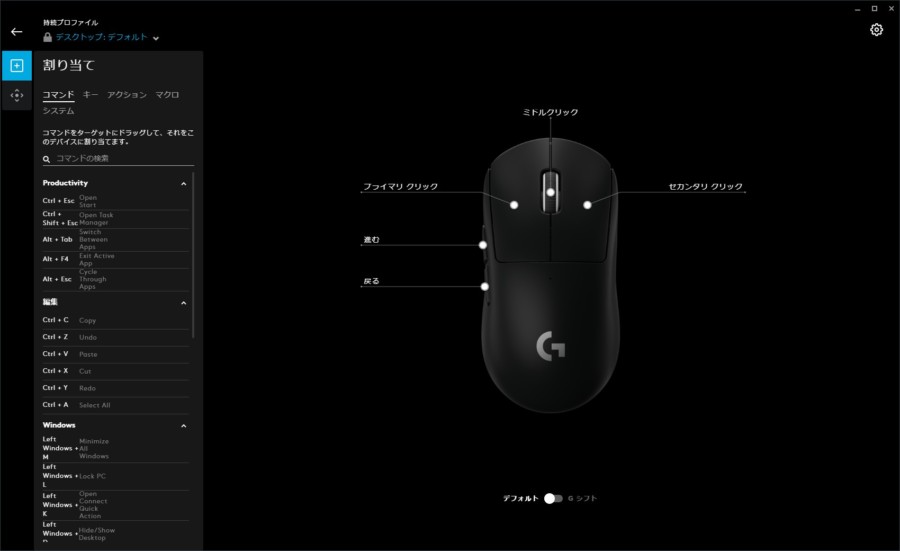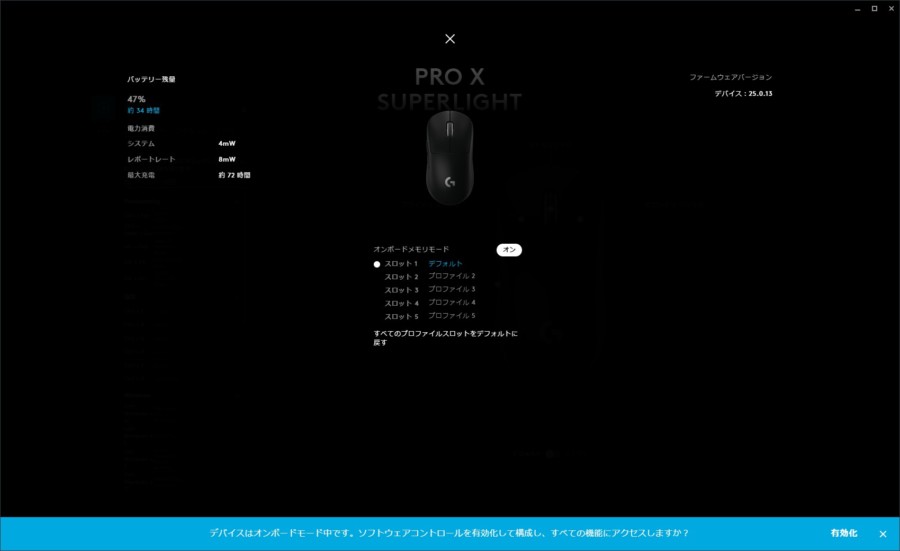 「PRO X SUPERLIGHT」ロジクールのソフトウェア「LOGICOOL G HUB」を使う事で設定を変更する事が出来ます。
